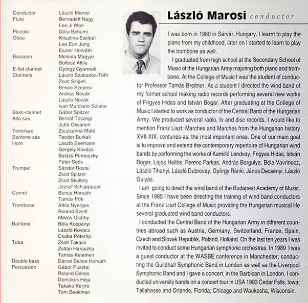 Felvétel: World Wind Music, Hilversum, P.O.B.836 CD WWWW 500.009 1995
